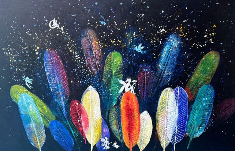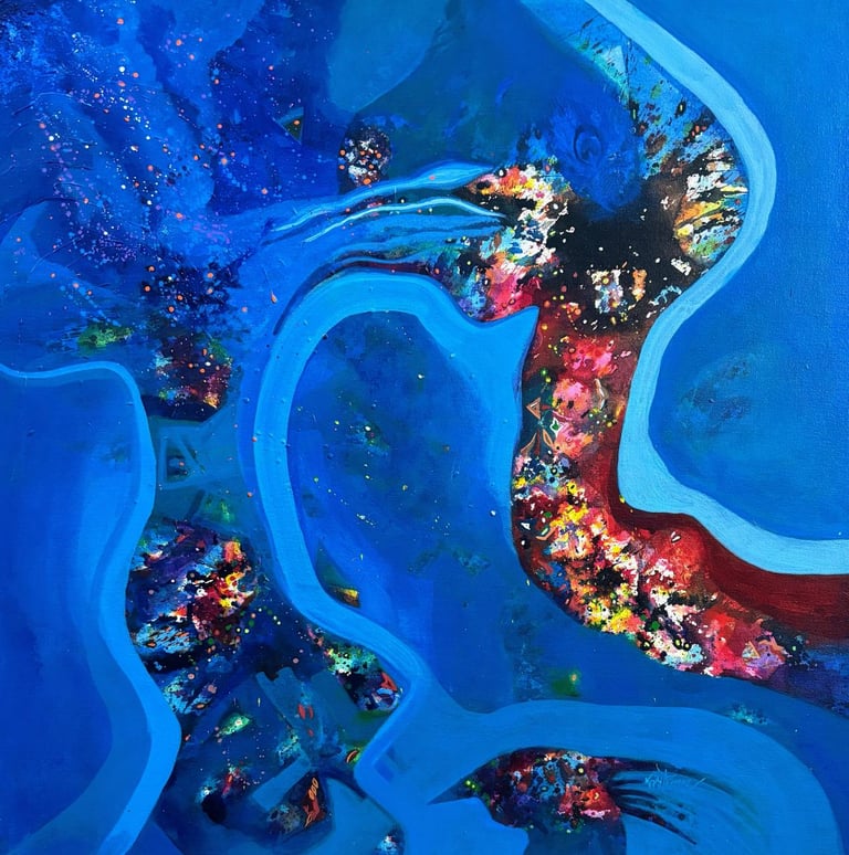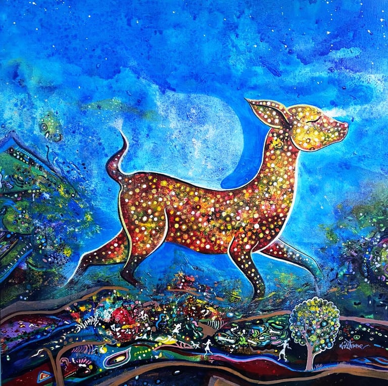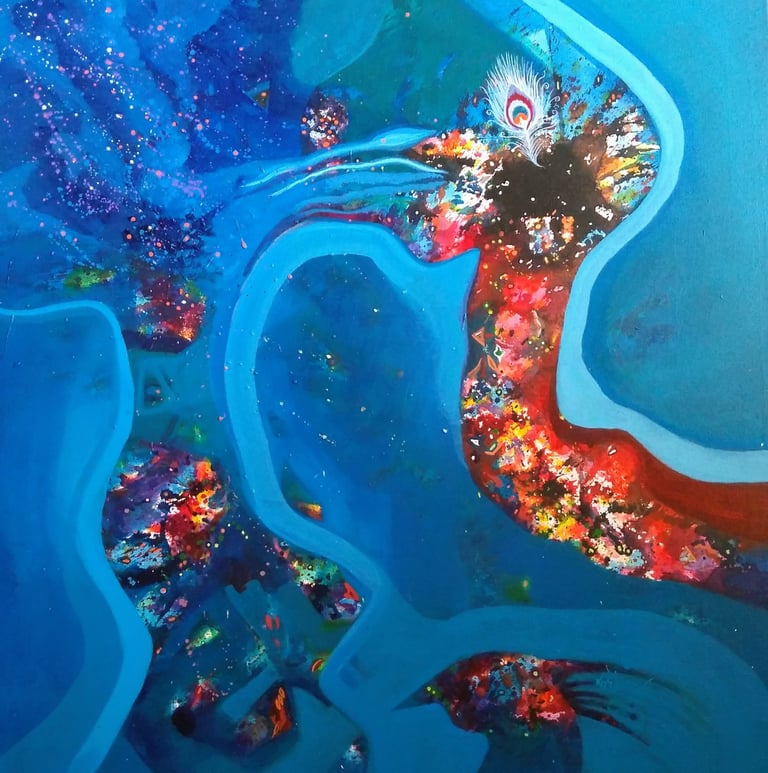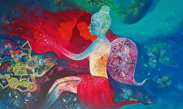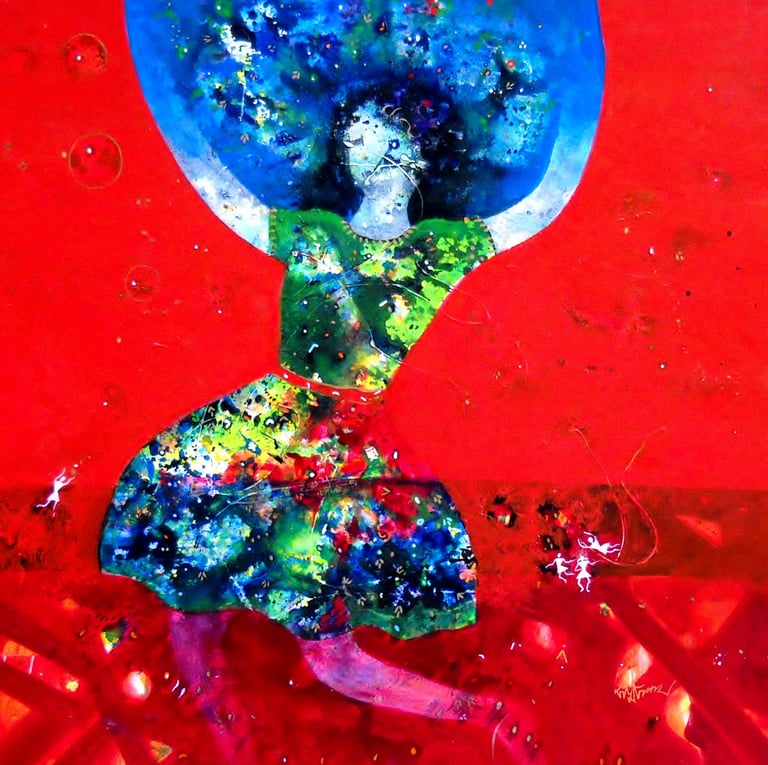 This series by Indian artist Sanjay Punekar explores spirituality through expressive human forms and abstract symbolism. The paintings reflect inner awareness, emotional depth, and the connection between mind, body, and soul. Using flowing lines, layered textures, and vibrant colours, the artist creates contemplative works that invite reflection, balance, and spiritual awakening.