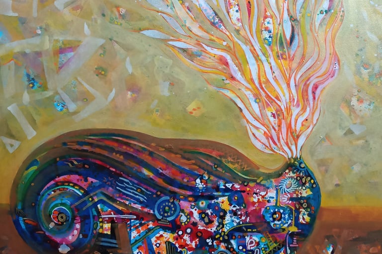 A journey into the inner landscapes of the soul, capturing emotions that words often fail to express through fluid forms and subtle layers